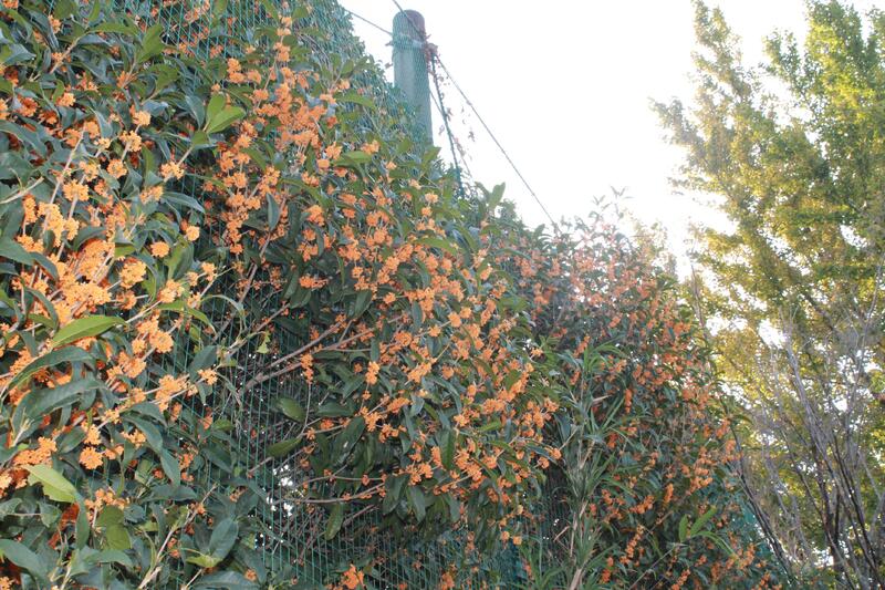 例年は9月下旬から10月上旬に各地でキンモクセイが咲き、秋の香りに包まれるのですが、今年はかなり遅く、室小学校では11月に迫ろうかと言う時期に一斉に咲き始めました。