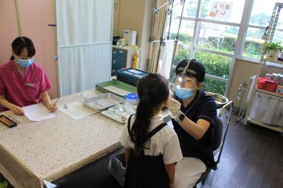 6月の歯科検診では、むし歯やむし歯になりそうな歯はないか、歯ぐきは健康か、歯並びはどうかなどを歯科校医さんに診てもらいました。