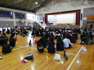 1月22日(木)に、北中校区の小学校(美咲野小、大津北小、護川小、室小)の6年生が集まり、中学校進学に向けて「四校合同交流会」を行いました。