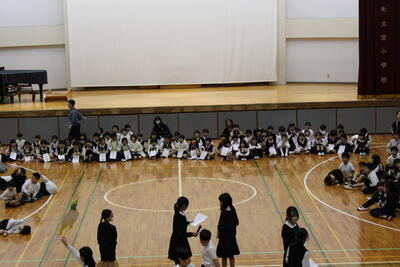 この日のために、室っ子運営委員会と集会委員会の児童たちが中心となり、準備を進めてきました。上級生と一緒に行ったレクレーションに、1年生の緊張もすっかりほぐれた様子で、会場には元気な笑い声が響き渡りました。