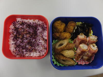子ども達はお休みですが、私たち(先生)、は、出勤しているので給食なしのお弁当でした