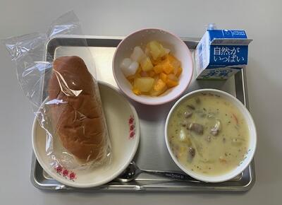 コーンスープは、大津中3年生のリクエストなのだそう。