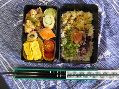 ふりかけが色とりどりで素敵なお弁当。川上先生から一言いただきました。