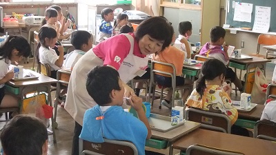 子どもたちからは「給食はおいしかったですか?」といった質問がありました。