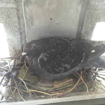 ハトさんは子どもたちがガラス越しの至近距離で観察しても、じっとヒナを温め続けています。