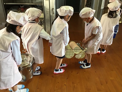 給食の準備も、好き嫌い無く食べることも、自分たちで片付けることも、どれも大切なお勉強です。