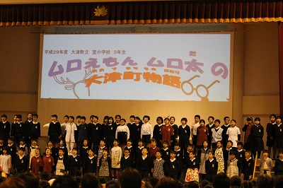 今日の交流では、3年生が大津町や自分たち自身のこと関するクイズを出したり、マジックを披露したりしていました。