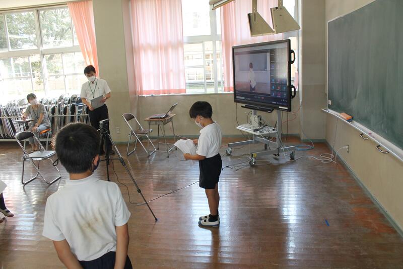 全校児童が一同に集まる事ができず残念でしたが、始業式はリモートで実施され、6年生と3年生の児童が立派な発表をしてくれました。