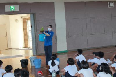 分団子ばと会が開催されました。例年だと、1年生から6年生までの分団員一同に集まって夏休み前の反省や夏休みの暮らしについて話合いをする予定でしたが、新型コロナ感染防止のため、全員集会を避け、登校班長会を体育館で実施しました。