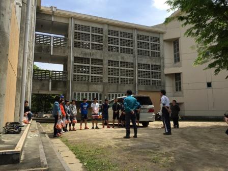 玄関では職員が子どもたちを出迎え、久しぶりに子どもたちと出会いました。