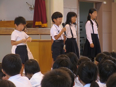 1年生と4年生の児童が、前期に頑張ったことを発表しました。