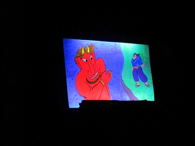 ブラックシアター「だいくとおにろく」上演後は、ブラックシアターの仕組みを説明してくださいました。