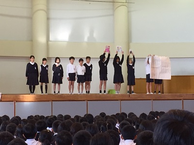 子どもたちに人気のある本や、図書室使用の約束について発表しました。