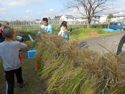 初めて稲刈りを経験する子が多く、どきどきの稲刈りでした。