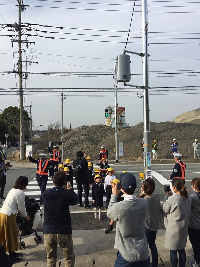 12日(月)の午後4時に、大津警察署長様をはじめ多くの来賓が見守る中、1年生がスイッチを押しました。