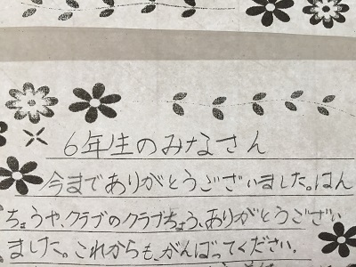 子どもからはお別れの言葉、PTAからは花束の贈呈がありました。