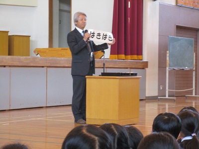 校長からは、「今後ははきはきとあいさつをしたり話をしたりしてください。」と話がありました。