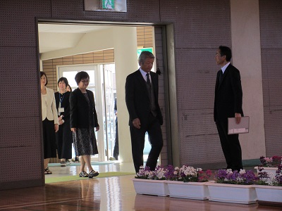 引率の教頭に続き、菊陽中部小学校へ転任する髙本校長をはじめ、11名の職員が入場しました。