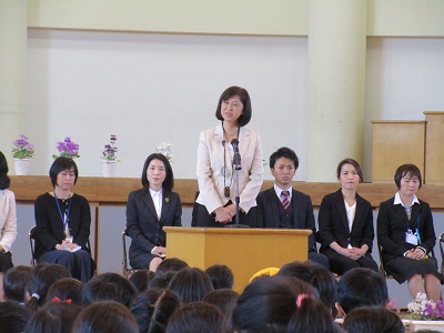 式ではそれぞれ、子どもたちや保護者の皆さま、地域の皆さまに向けてあいさつをしました。