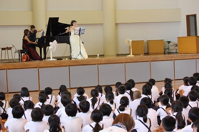 扇風機がフル稼働する大変暑い体育館での鑑賞会でしたが、暑さに負けない「熱い演奏」で私たちを魅了してくれました。