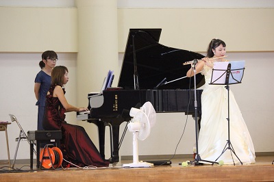 本校保護者である池上さんと、ハンガリーでフルートを学んでいる岩下榛華(はるか)さんをお招きし、開催しました。