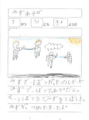 子どもたちが水遊びの様子を振り返り、絵日記にまとめましたのでご覧ください。