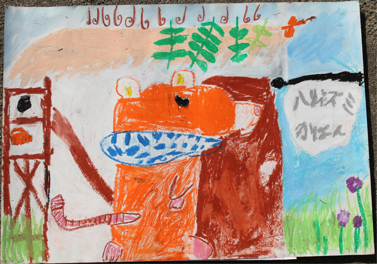 絵をかくときに細かくクレヨンをぬったり、人物とか大きくかいたりしたことをがんばりました。