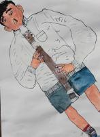 今回の木版画では、友だちと一緒に好きなことや得意な活動をする自分を意欲をもって版に表すことができました。また、表したい思いがよく伝わるように画面構成を工夫すると共に、彫刻刀の特徴を生かした彫り方を工夫して作品を仕上げました。