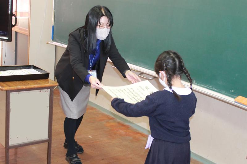 修了式では、校長より、各学年の代表に修了証がわたされました。
