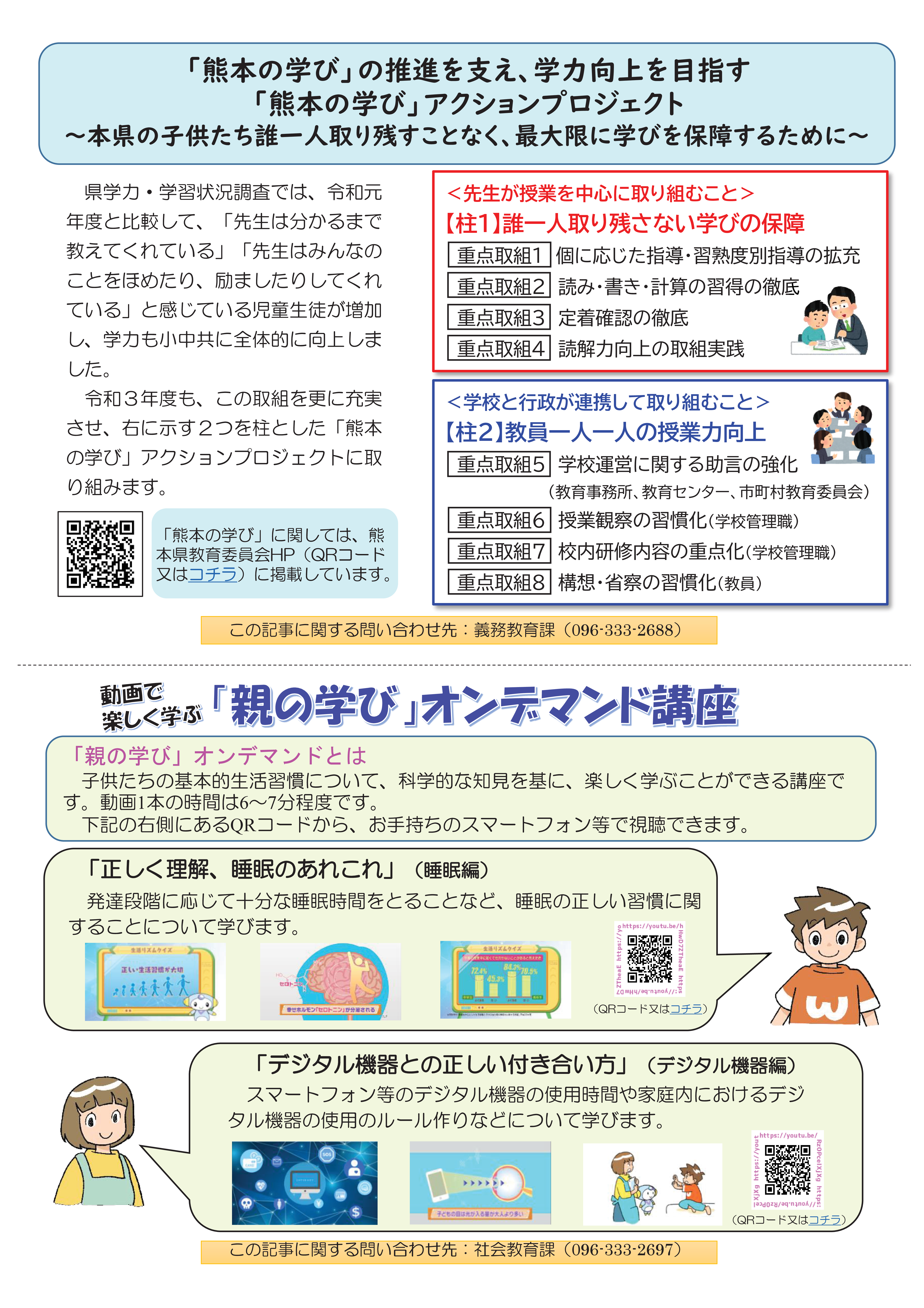 現在、新型コロナ感染症の蔓延により、子供たちにとっても、病気の予防は身近な課題ではないでしょうか。子供たちには、自分自身の健康に目を向け、正しく病気を予防し、健康管理に努めてほしいです。