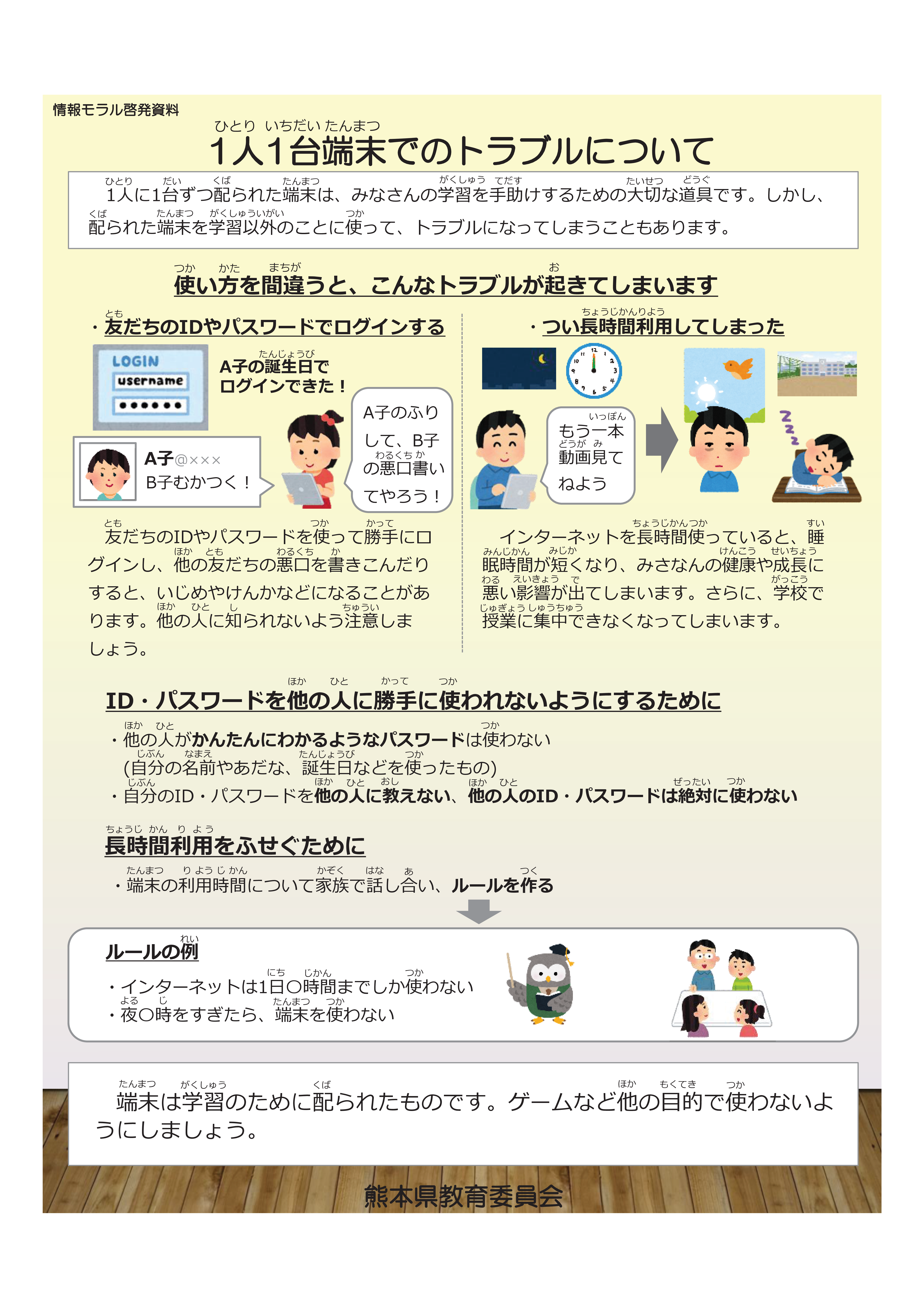 県教育委員会からの資料です。御家庭ごとのルールづくりの話し合いの際に参考にしてください。