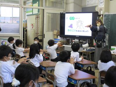 先日、養護教諭の上田先生による手洗い指導が行われました。