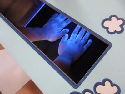 子どもたちからは「わー!!」と歓声が上がり、大盛り上がり。「爪のところが白いから洗えてないんだ!」「思ってたよりきれいに洗えてないな。」と自分の手洗いについて振り返っていました。