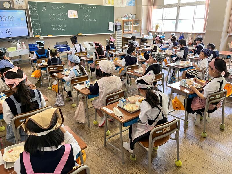 3年生以上の学年は、12日(水)よりスタートしていましたが、1・2年生はこの日がスタート。特に1年生は初めての給食当番で、担任の先生方に教えてもらいながら、上手につぎ分けていました。これから好き嫌いなく、感謝しておいしくいただきます!
