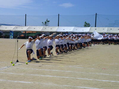 5月27日(土)の運動会は、晴天にも恵まれ素晴らしい運動会となりました。逆転に次ぐ逆転の団体競技や、応援団の大きな声援を受けて一生懸命走る姿がかっこよかったリレーなど、どの種目もとても素晴らしいものでした。今回から数回に分けて、子どもたちの素敵な姿をご紹介します。