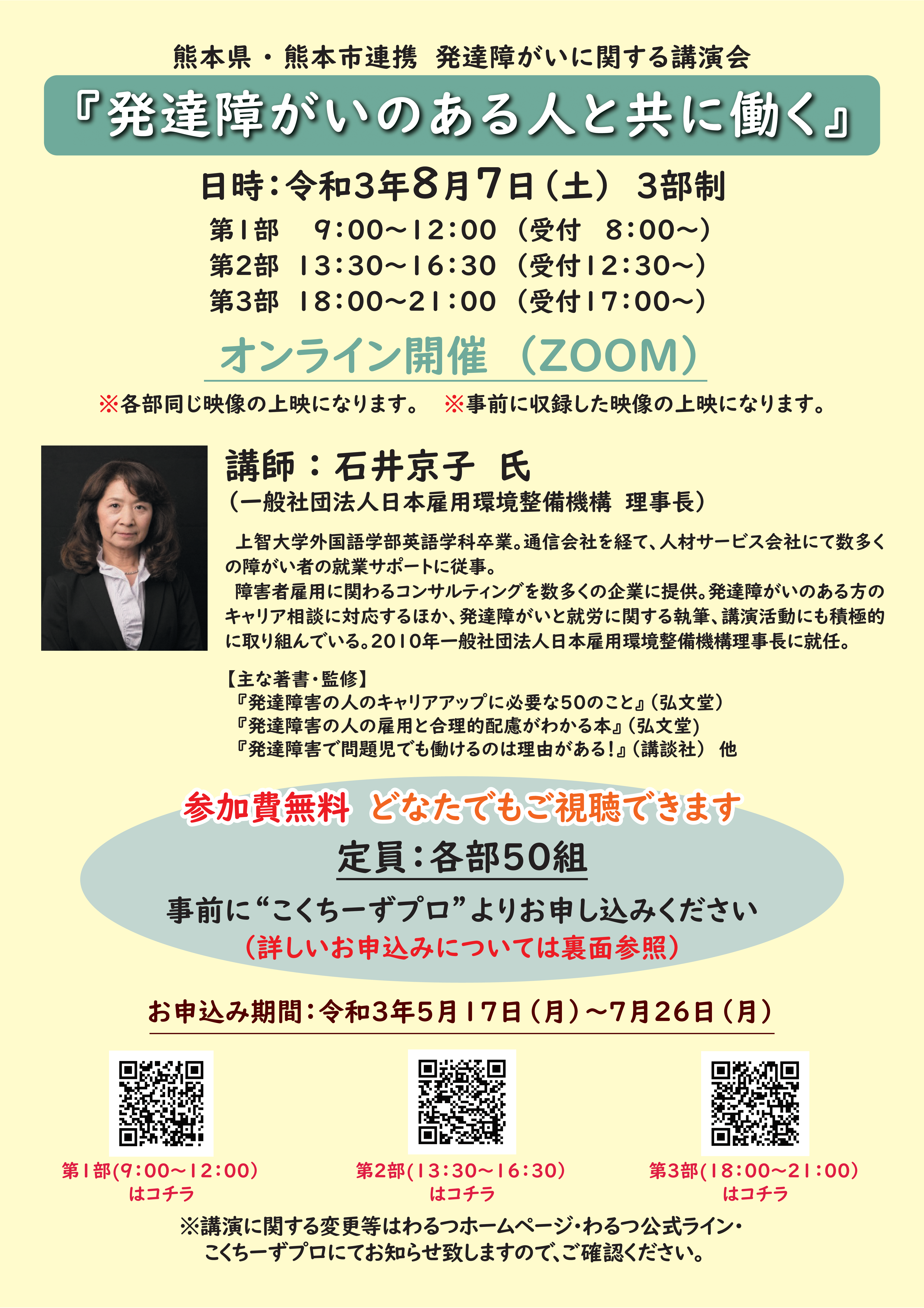 熊本県・熊本市連携発達障がいに関する講演会についてのご案内が届きました。