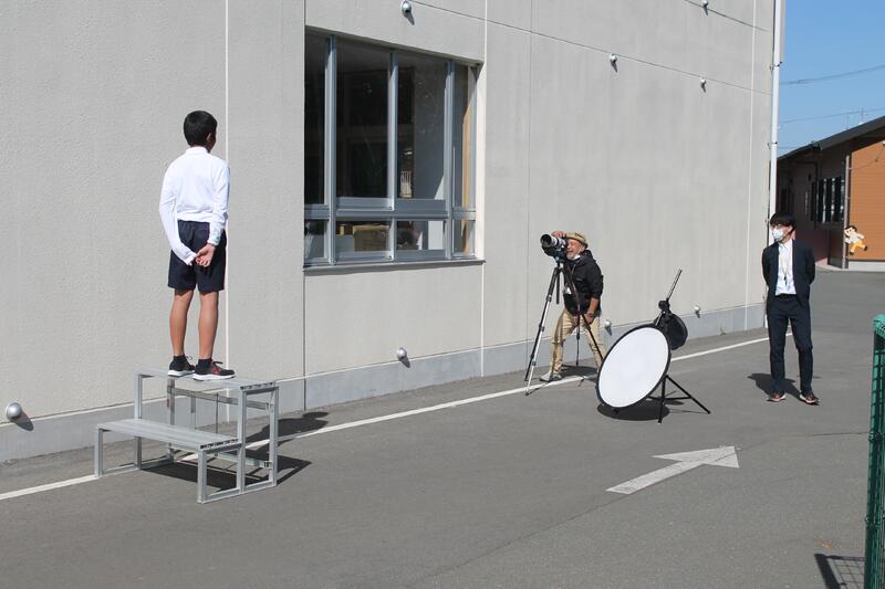 業者の方のカメラは、とても高価で、1台一式100万円弱するそうです。個人で購入することは難しいと感じました。写真撮影の時は、業者の方が、「笑顔をつくって」「顔をもっと左横に向けて」などと子供たちそれぞれに指示があり、卒業アルバム用の最高の一枚がとれたと思います。