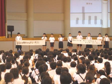 6月29日の児童集会では、人権委員会からの発表がありました。