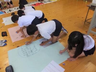 掲示委員会では、各団長にインタビューをして、意気込みや団員へのメッセージなどの掲示物を作りました。また、室小学校のみんながスローガンの言葉を目標にして頑張って欲しいと考え、大きな運動会スローガンの掲示物も作りました。当日にはこの大きなスローガンが会場に掲げられる予定です。掲示委員会の力作となっています。こちらもお楽しみに。