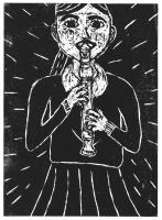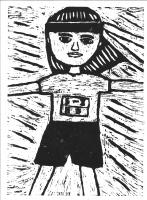 今回の木版画では、友だちと一緒に好きなことや得意な活動をする自分を意欲をもって版に表すことができました。また、表したい思いがよく伝わるように画面構成を工夫すると共に、彫刻刀の特徴を生かした彫り方を工夫して作品を仕上げました。