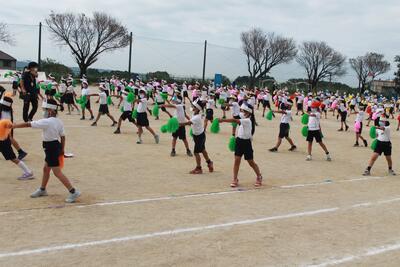 全児童が集まって運動会全体練習