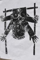 2年生の紙版画では、画用紙の組合せや配置を工夫しながら、自分の心に残る出来事を、紙版画に表す楽しさを味わうことをねらいとしています。また、自分でテーマを見つけたり、切った紙版の組合せや配置を考えて画面を構成したりすることで、想像する力を伸ばしていくことをめざしています。これは、本校で児童に身に付けさせたい資質・能力の中の「伝える力」にあたるものです。