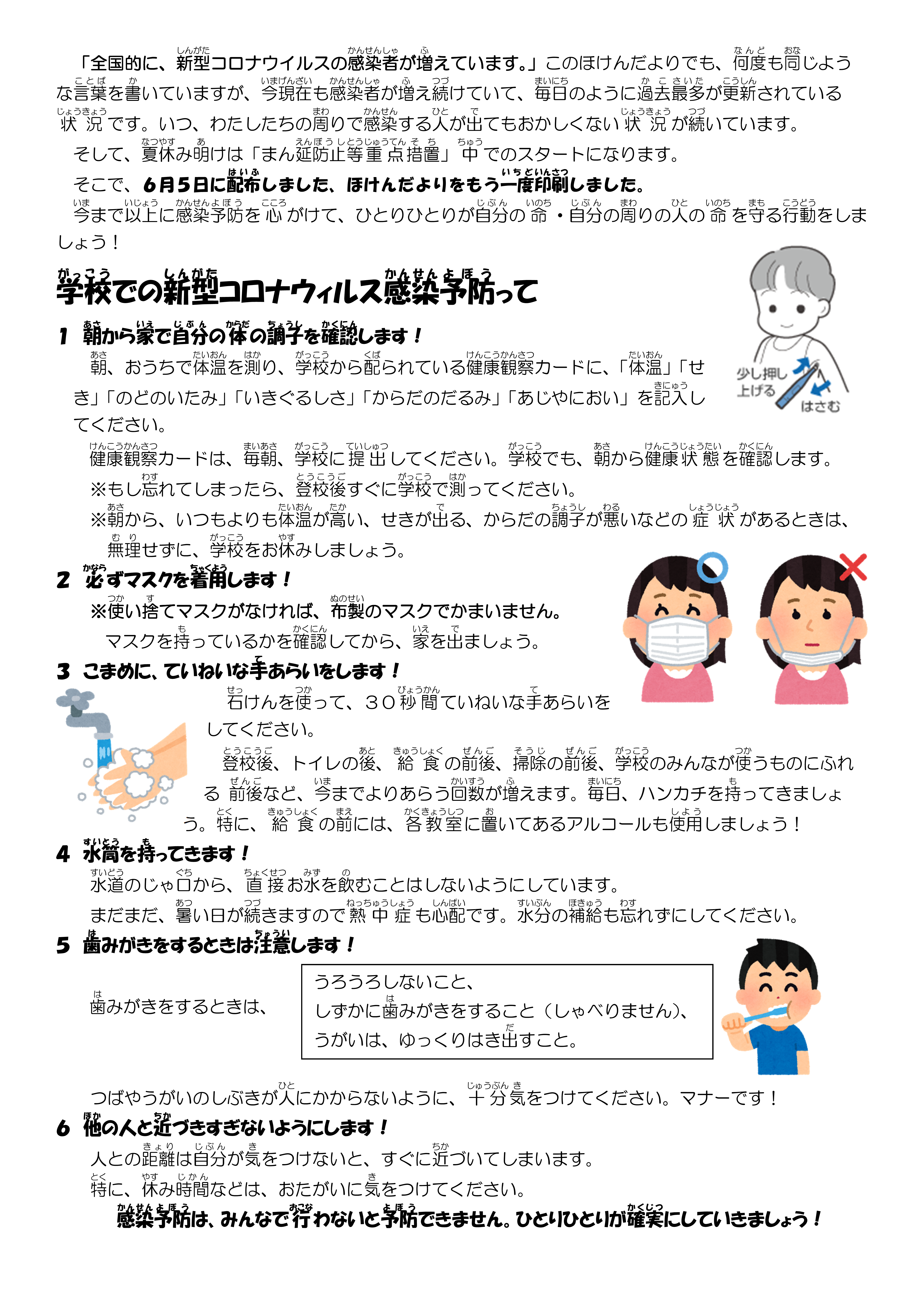 万全の状態で運動会を迎えることができるように、手洗いうがいを徹底的にしたり、ケガが、起きるような危険な行動をしたりすることは避けましょう。