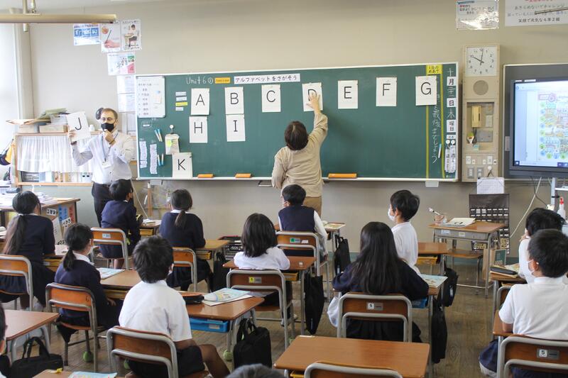 ネイティブであるオースティン先生の発音を聞きながら、子供たちは、生きた英語を学んでいます。