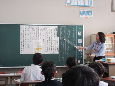 まず、第2学年岡本教諭による「名前を見てちょうだい」の授業について。