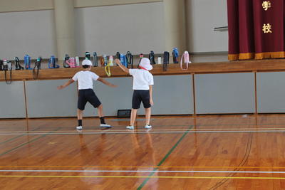 先週より、昼休みや放課後の時間を利用して、応援団の子どもたちの自主練習が始まりました。6年生の応援団員が、5年生の応援団員に熱のこもった指導を行っていました。 応援団のパフォーマンスも上がって、運動会に向けた練習も本格的になっています。今年度も、すばらしい応援合戦が繰り広げられることを期待しています。