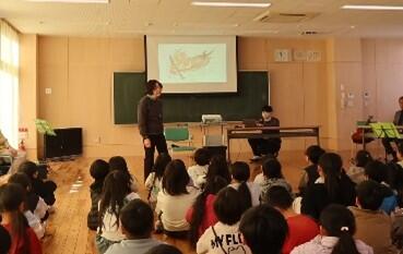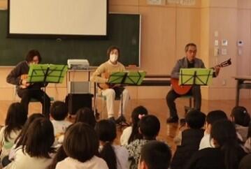 2月3日(火)に、マンドリンアンサンブル「ロマネスコ」の方々をお招きし、1・2年生を対象に「お話と音楽の会」を開催しました。この取組は、昨年度から行っており、今年度は2回目で、マンドリン、マンドラ、ギターの3つの種類の楽器を用いた演奏を聴かせていただきました。「みかんの花咲く丘」や「あかとんぼ」などを演奏いただき、とてもきれいな音色でした。