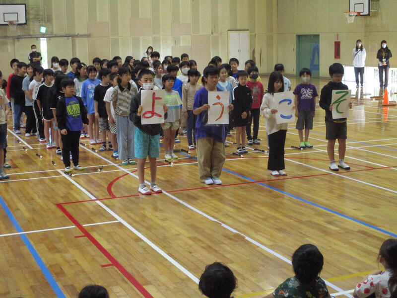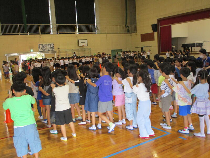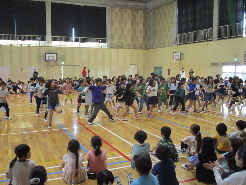 先週は昼休みに、「みんなで遊ぼう」を行いました。遊びの内容は、縦割り班活動と代表委員会でみんなで話し合って決めた「自己紹介じゃんけん列車」です。他の学年と仲を深めることを目的とし、3年生と5年生、2年生と4年生、1年生と6年生で遊びを行いました。じゃんけんをして、名前と好きなことを紹介しながら、じゃんけん列車でどんどん長い列ができていきます。初めて話す者どうしでも、お互い知っている者どうしでも、楽しく交流することができました。そして何より、自分たちで話し合って決めたことをすることができ、子どもたちの自主性が更に高まりました。