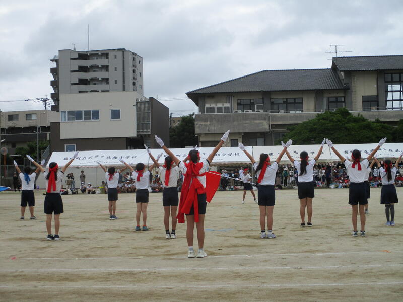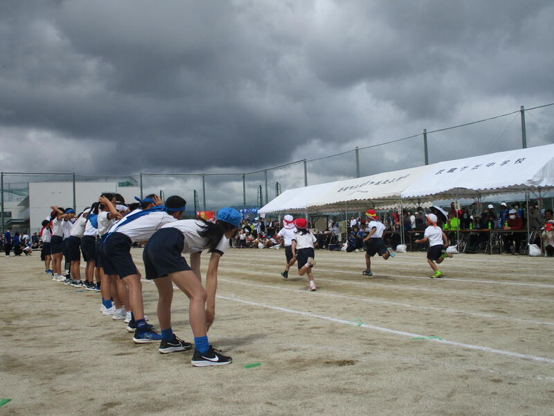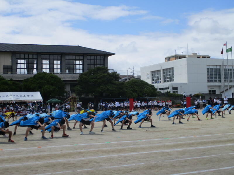 その後、これまでそれぞれの学校でゲストティーチャーのりゅうちゃん先生に教えてもらってきたフラッグフットボールの交流試合を行いました。今までの学習の成果を生かし、みんな生き生きとゲームをしていました。審判も行っている姿があり、すごいと思いました。120人ぐらいの子どもたちがいて大人数でしたが、みんながしっかり指示を聞き、動くことができていてとてもいい時間となりました。