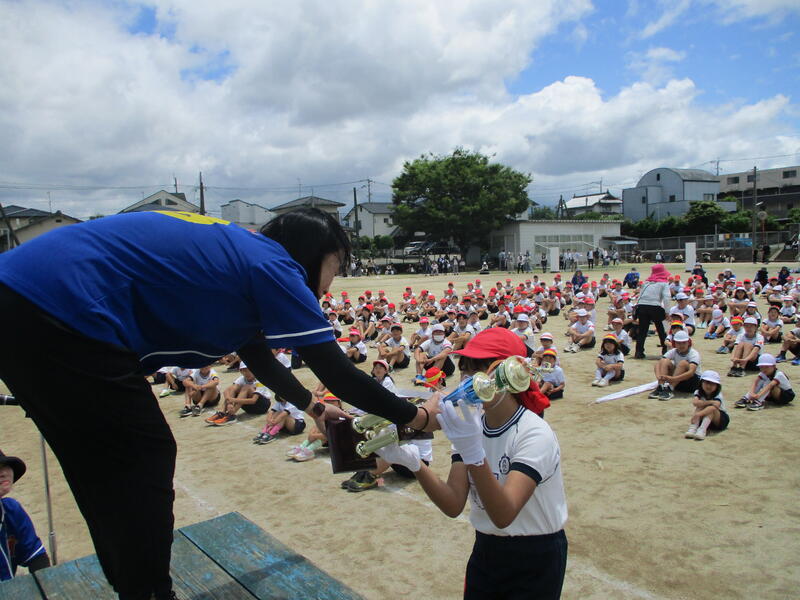 本校では給食の時に、ある放送が必ず流れます。それは教頭先生による「靴並べチェック」です。教頭先生は毎日子どもたちの靴箱を見回ってくださり、並んでいなかった靴を並び直し、その数を報告してくださいます。夏休み前は、並んでいない靴が20足以上ある日が多くありました。最初の頃は、子どもたちも何となく放送を聞いていたのですが、日を追うごとに並んでいない靴の数が減っていきます。20足だったのが、15足…、10足…、と減っていき、7足となった時には、子どもたちは「やったー。」と喜んでいました。それでも、日によっては10足を越えたり、3足の時には「あと少しー。」と悔しがったりと、毎日の放送に聴き入っています。低学年の子どもも、運動場から戻った時に、しっかりと靴を揃える姿が見られます。自分から進んでクラスの友だちの靴を並べてくれる子どもも増えました。そしてとうとう、「今日は0足でした。」という放送が流れると、「おー。」と、職員室にまで子どもたちの大きな歓声が聞こえてきました。みんなの心が一つに揃ったからだと思います。教頭先生がいつもおっしゃる言葉「一つ一つを丁寧に、自分事として捉える。」を、全校児童で達成することができました。